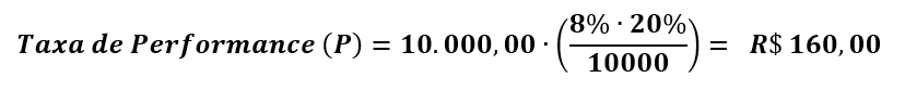 3 – TAXA DE PERFORMANCE: A partir da equação 4, calculamos P, que resulta em R$ 144,00.