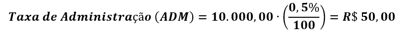 Taxa de administração: adm = 0,5% (para fins de exemplo, considerar taxa total, e não proporcional)