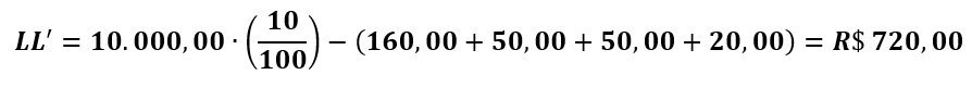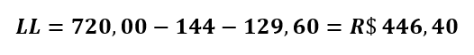 1 – LUCRO LÍQUIDO LIVRE DE TAXAS: Pela equação 7, obtemos R$ 720,00.