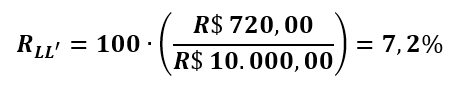 Desta forma temos o Lucro Líquido de um Investimento, livre de taxas e de impostos. A Rentabilidade Líquida (RL), se calcula conforme segue: