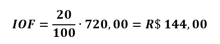 7 – IOF: O cálculo do IOF é conforme equação 9, que resulta R$ 144,00.