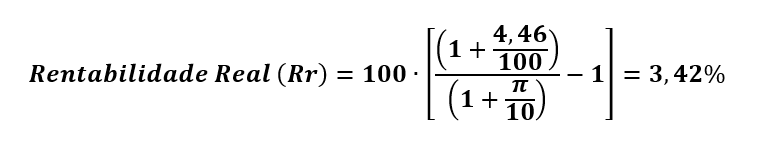Mas isso não é tudo. Temos que considerar os efeitos da inflação (𝜋). Nesse momento teremos a rentabilidade real de nosso investimento.