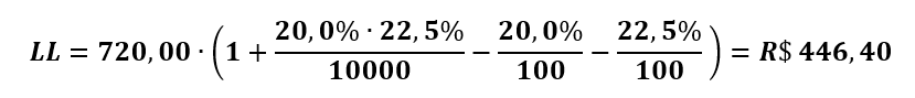 Agora nossa base de cálculos não é mais “V”, ou seja, o valor do investimento, e sim o valor do Lucro Líquido Livre de Taxas (LL’). Assim, temos as seguintes equações: