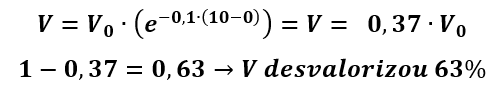 Em termos práticos, para a equação 2, em 10anos, com uma inflação média de 10%; a Moeda desvaloriza, aproximadamente 63%, veja-se: