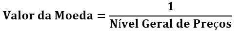 Isso nos diz que ao aumentar o Nível Geral de Preços em uma dada economia, o Valor da Moeda diminui, ou seja, a Moeda desvaloriza. Ao passo que, com a queda do Nível Geral de Preços, o Valor da Moeda aumenta, ou seja, a Moeda valoriza.