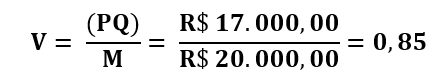 A Velocidade do Dinheiro “V” pode ser calculada conforme a equação 11.